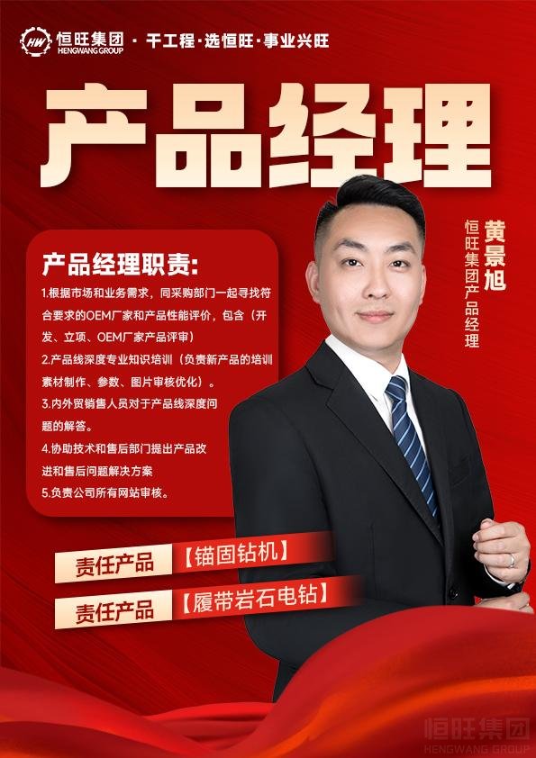 黃景旭,責(zé)任產(chǎn)品:錨固鉆機(jī)、履帶巖石電鉆