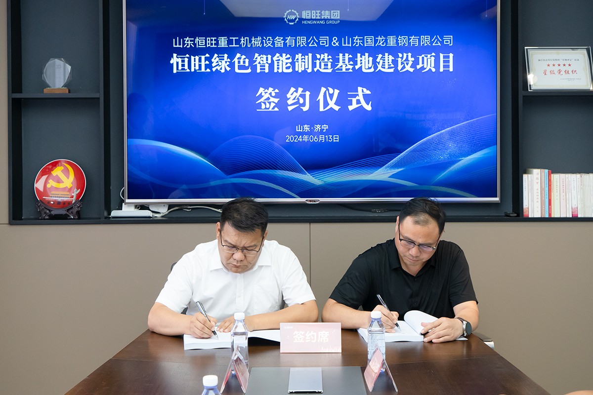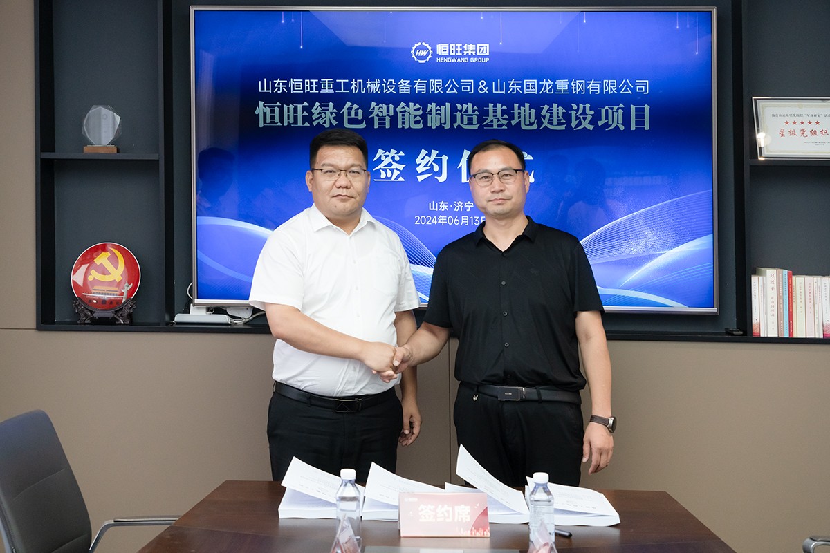 6月13日,恒旺集團與山東國龍重鋼有限公司就恒旺綠色智能制造基地建設項目簽署合作協議。恒旺集團總經理劉小偉與山東國龍重鋼有限公司總經理胡榮地出席并代表雙方簽署合作協議。