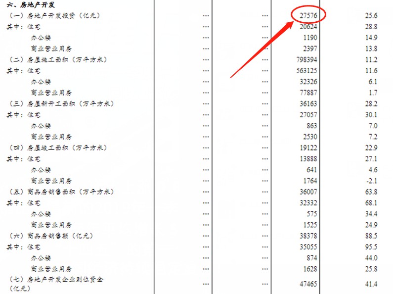 同時,結合一季度實際數據不難發現,尤其是分項數據中的房地產開發方面,其總值達到27576億元,同比增長25.6%。
